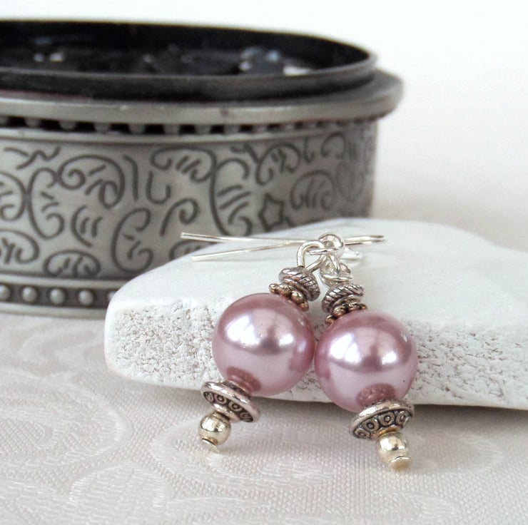 A lovely pair of dusky pink shell pearl earrings that would be perfect as bridal jewellery.