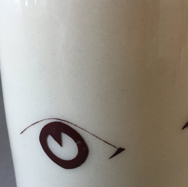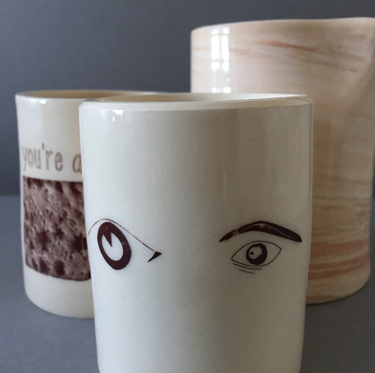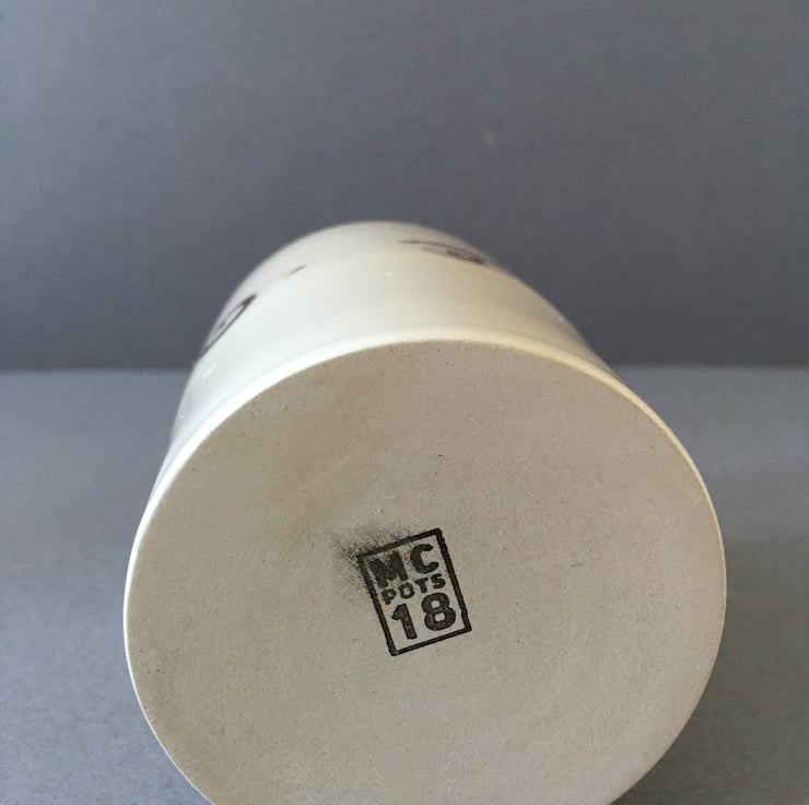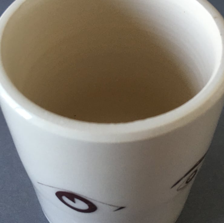 Off white, hand thrown earthenware pot. EYEdeally made for a candle, or plant but could have any bits and pieces in. The eye decals are fired to a warm brown colour. A cheeky little gift or addition on any table that needs a chuckle!