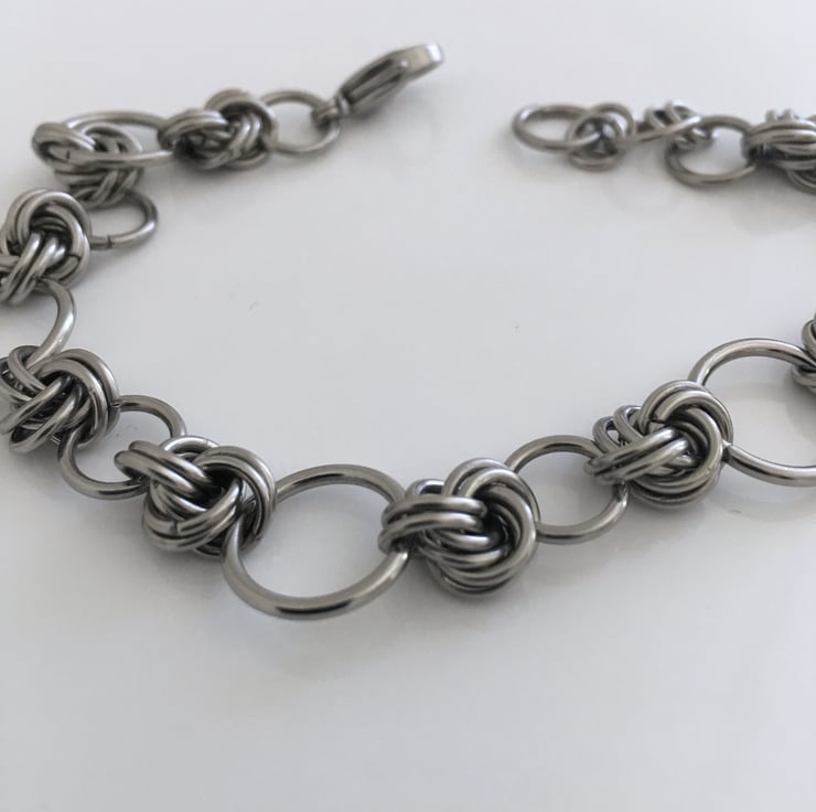 This bracelet would make an ideal 11th anniversary gift or a birthday gift for someone special. Handmade in a long lasting stainless steel, this design has a light open weave with endless danish love knots. it is suitable for any occasion and is really pretty and feminine, and can be worn everyday.