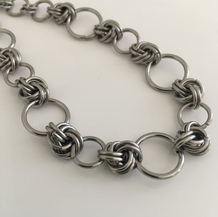 I like the way the 'forever' knots' are highlighted by the larger rings. It is these rings which bond (unites) the piece together, and I think that is perfect as an anniversary gift idea.