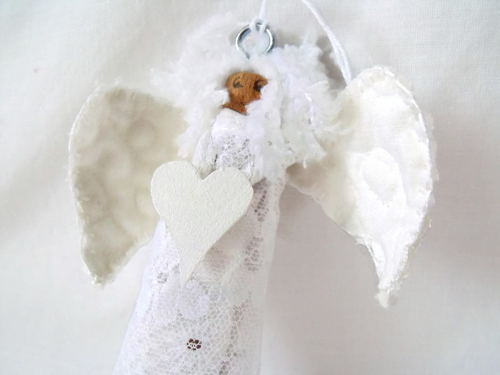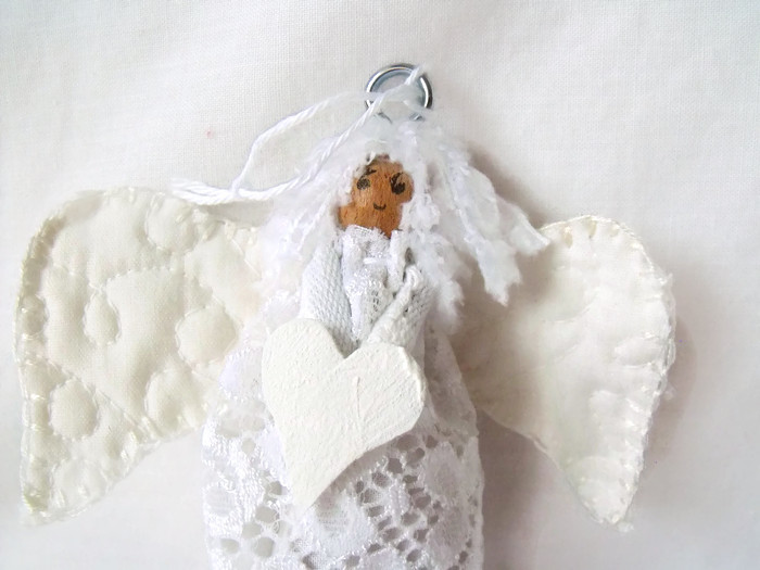 I attached quilted wings and both angels are holding a white heart.