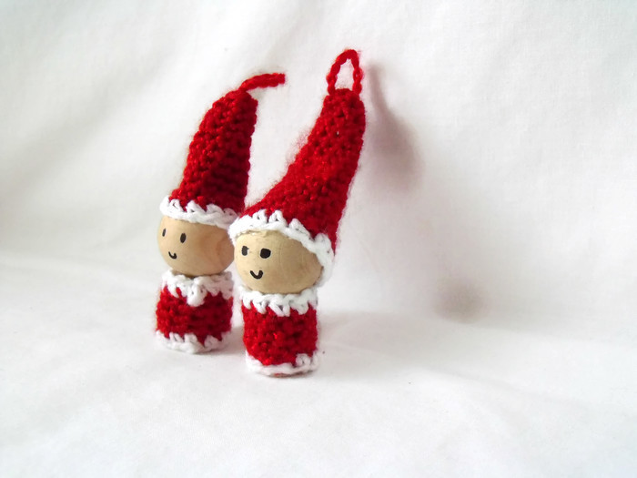 Here we have two crocheted hanging Christmas santa's for your tree.