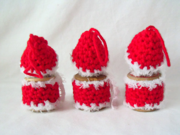 A unique set of hanging spool santas for your tree.