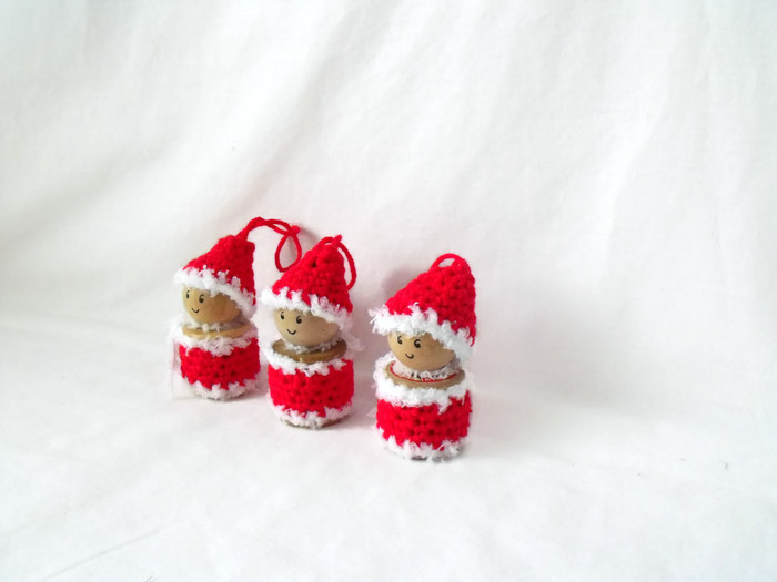 Here we have a set of three crocheted hanging santa's for your Christmas tree.