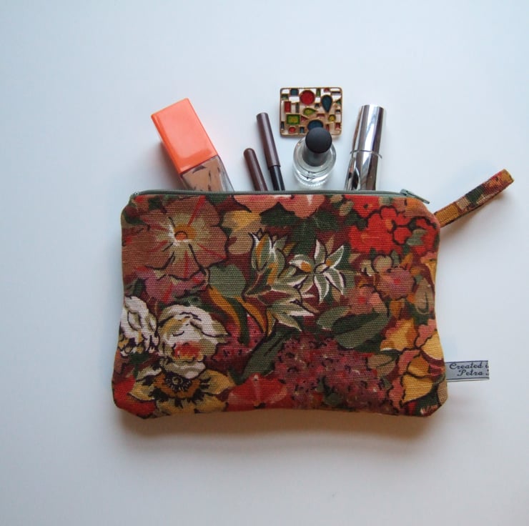 This beautiful fabric was designed for Liberty in the 1970’s would you believe, and makes a perfect bag for make up, cosmetics or as a large purse.