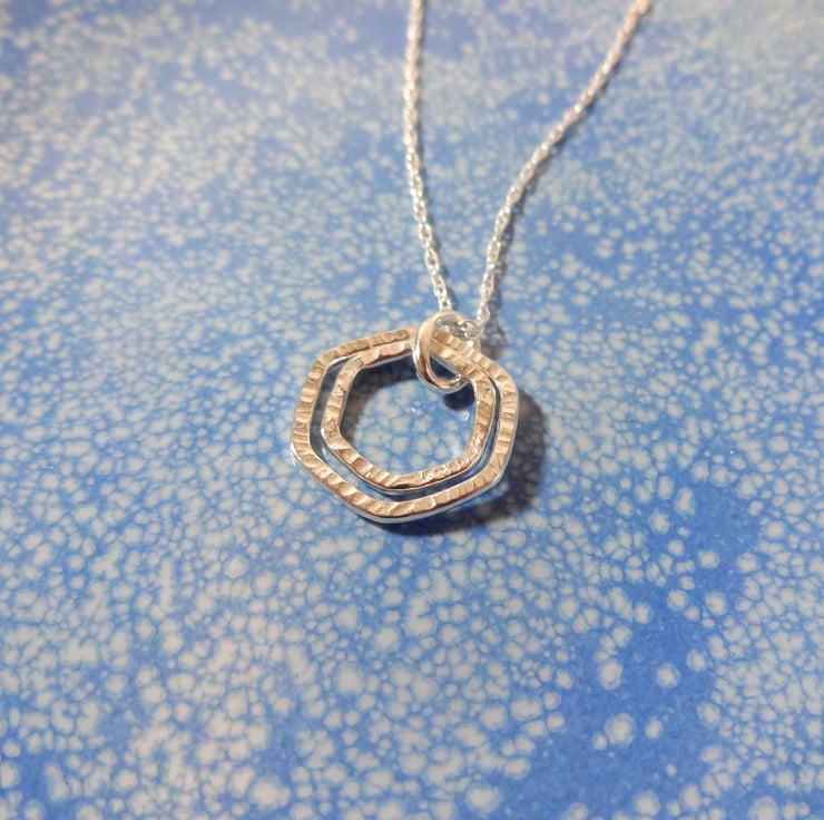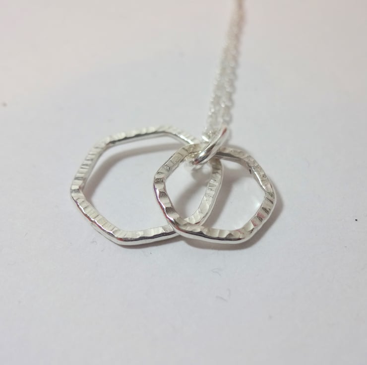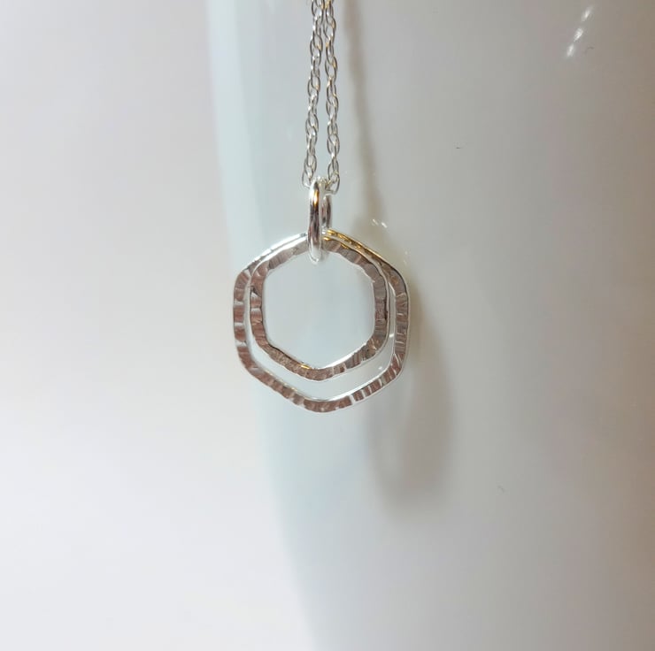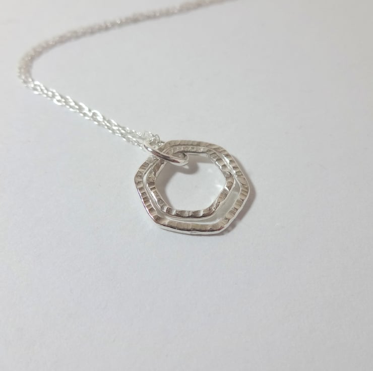 Beautiful Double Hexagon Necklace handmade in Sterling Silver. Minimalist and delicate,