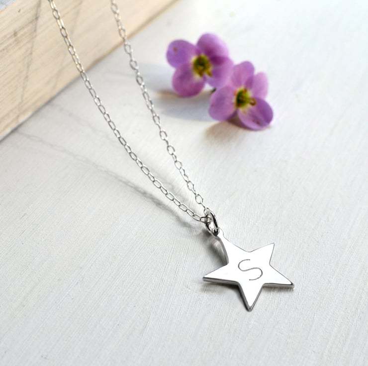 Our gorgeous personalised star initial necklace with its celestial theme is right on trend and looks fabulous worn on its own or layered with other necklaces.