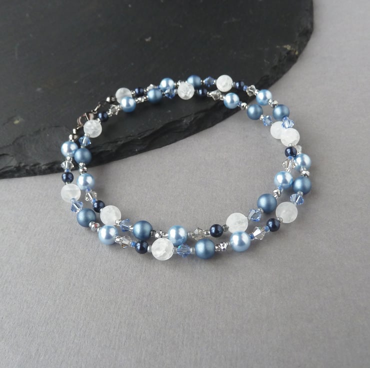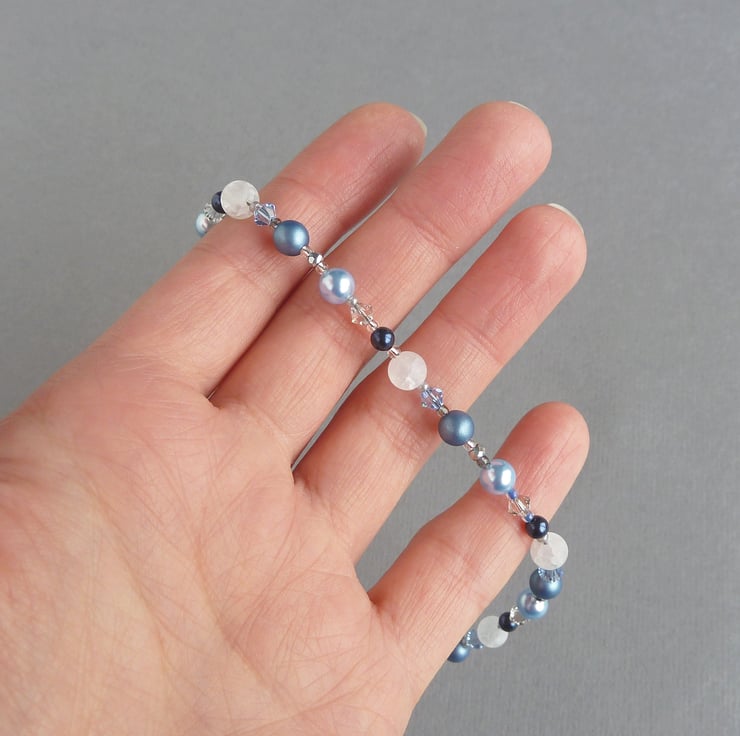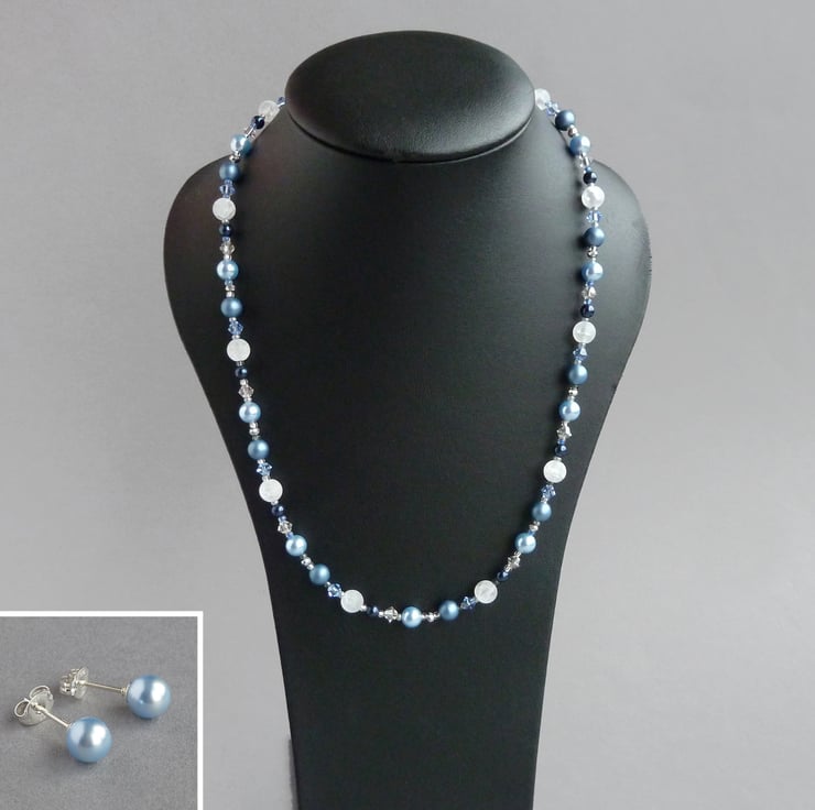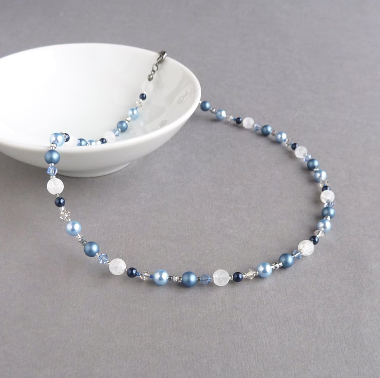 Blue Beaded Necklace - Mid Blue Pearl and Crystal Jewellery - Navy Wedding Gifts