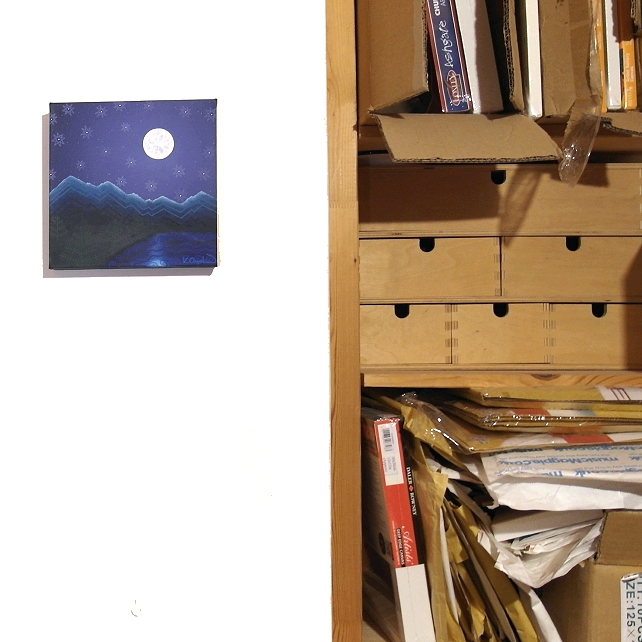 This original artwork is painted in acrylics on a 20cm square canvas with 3.8cm deep edges (8" square with 1.5" edges) The image carries on over the edges of the canvas so there is no need for framing, and a string is attached to the back so it is ready to hang.