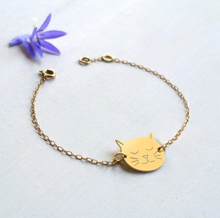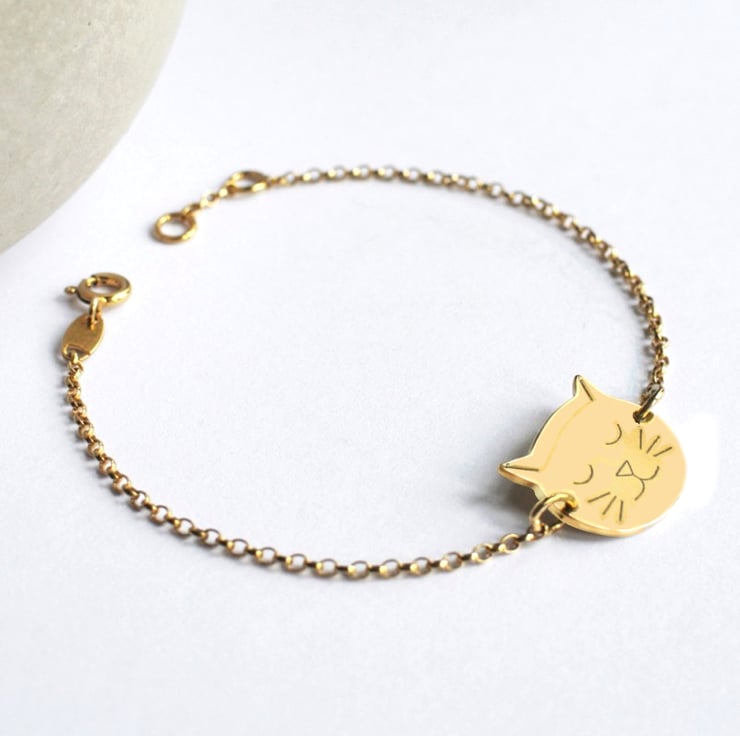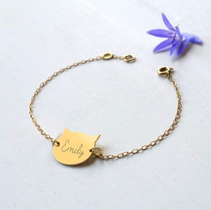 Our sweet cat face bracelet with engraved detail can be personalised on the reverse with up to 10 characters.