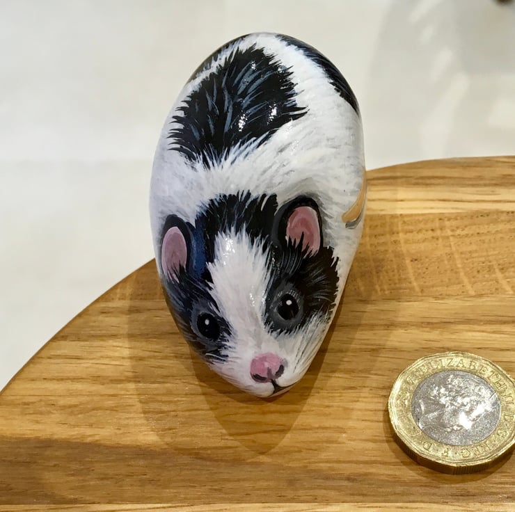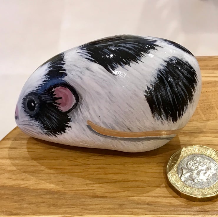 This little mouse has been painted onto a smooth stone and glazed for a glossy protective finish