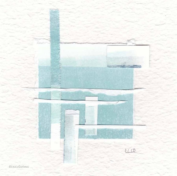 A coastal inspired minimalist paper collage inspired by the sea, sky and groynes of Bournemouth beach. The stripes on the shoreline have inspired a project to make one collage a day for the month of February. This is no.18 in the series.