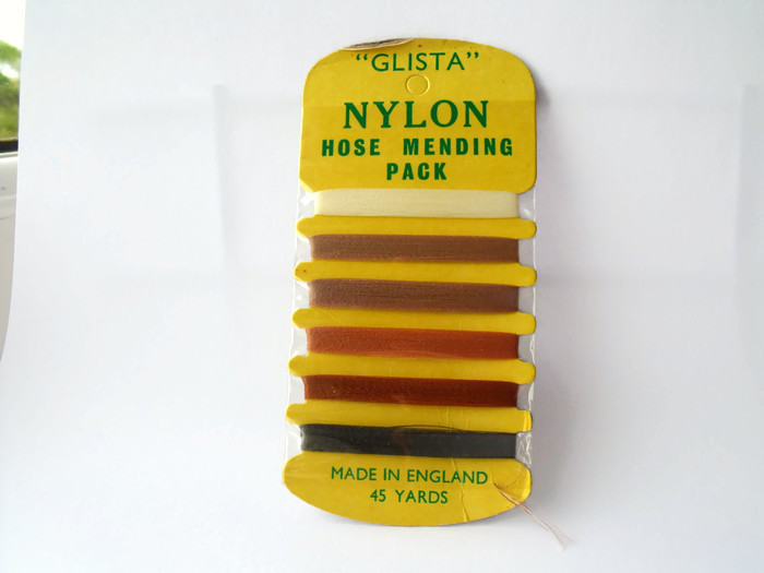 Here we have a vintage pack of stocking repair thread, Glista nylon mending hose.