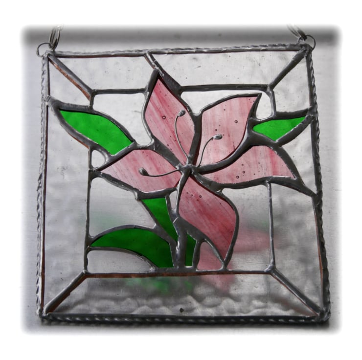 RESERVED Lily Stained Glass Suncatcher Pink Framed 016