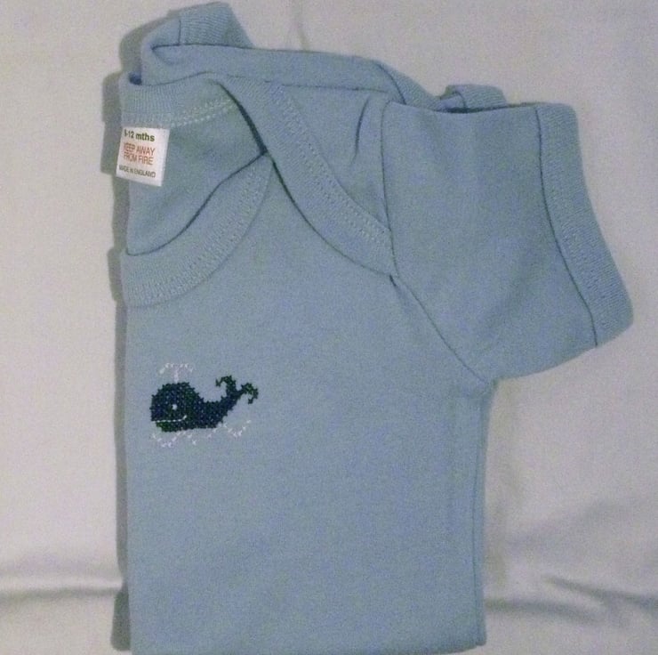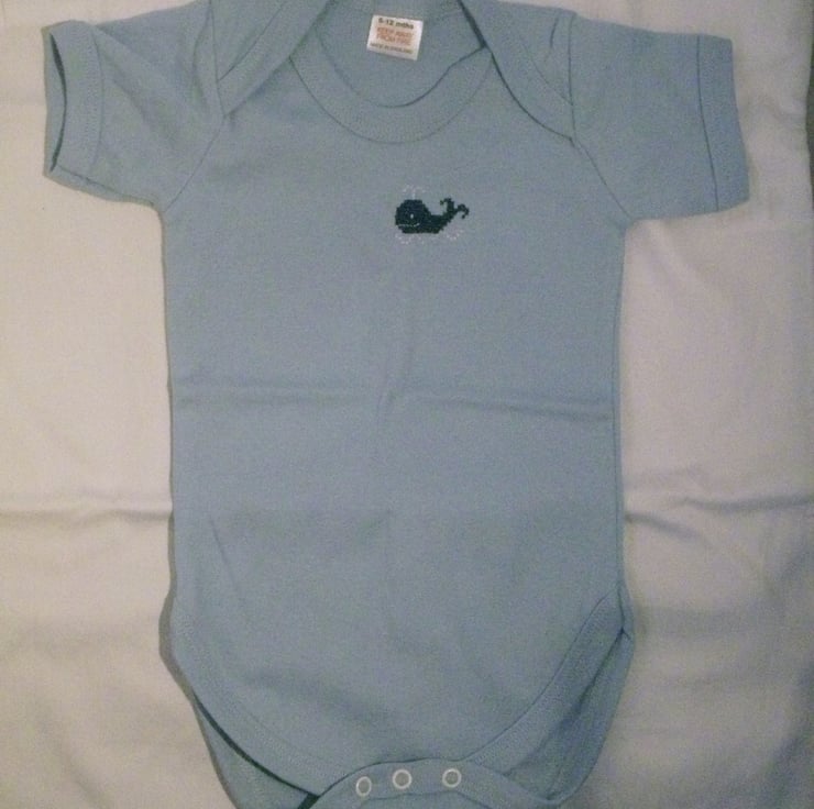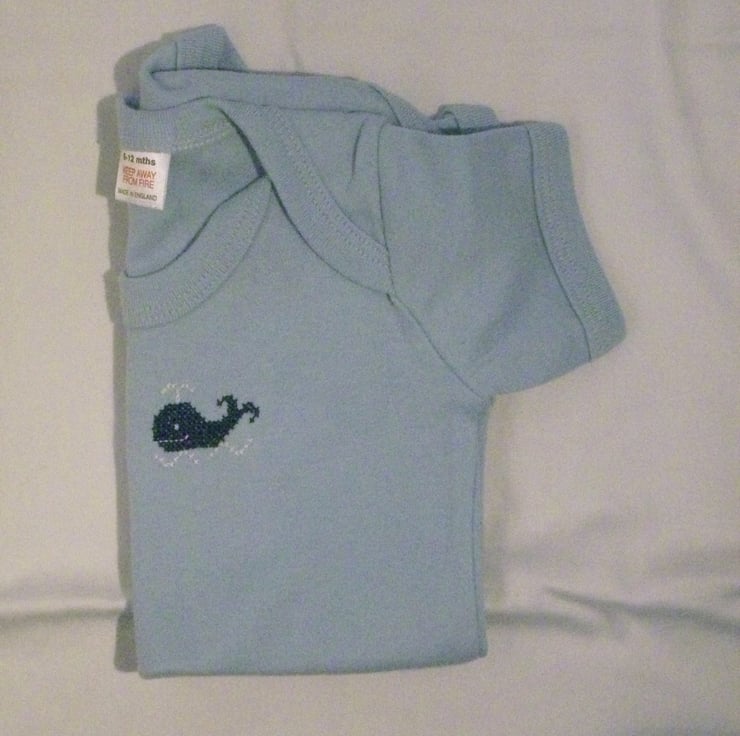 Blue Whale, Baby Vest, Age 6-12 months, hand embroidered