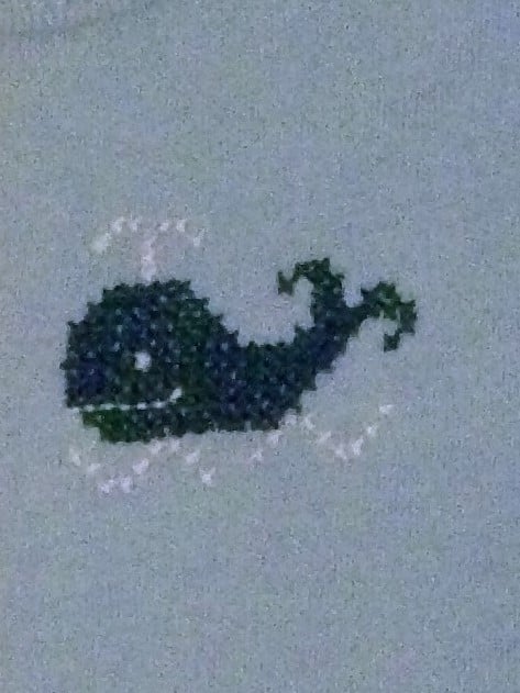 I love stitching this little fellow, and the colour of this vest suggested his watery environment.
