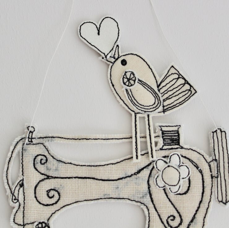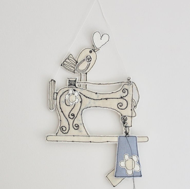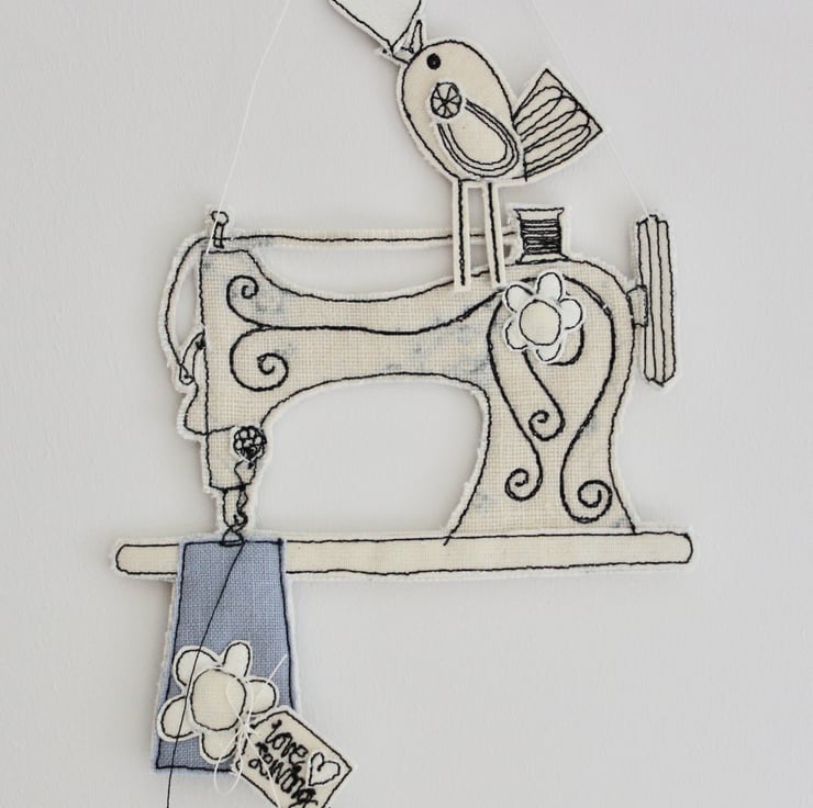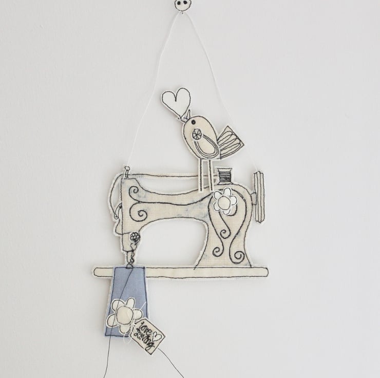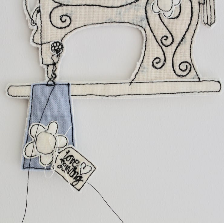 Suspend 'love sewing' sewing machine using the linen thread loop and add a sewing dimension to your home or even a unique present for that special person who loves to sew.