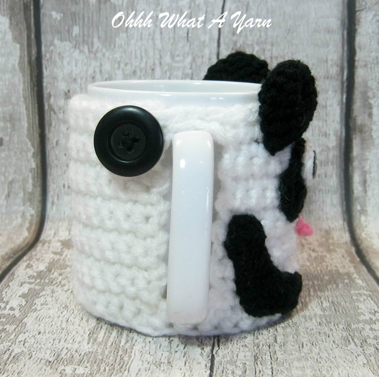 This cute panda mug hug is crocheted in 100% acrylic yarn.