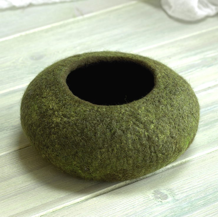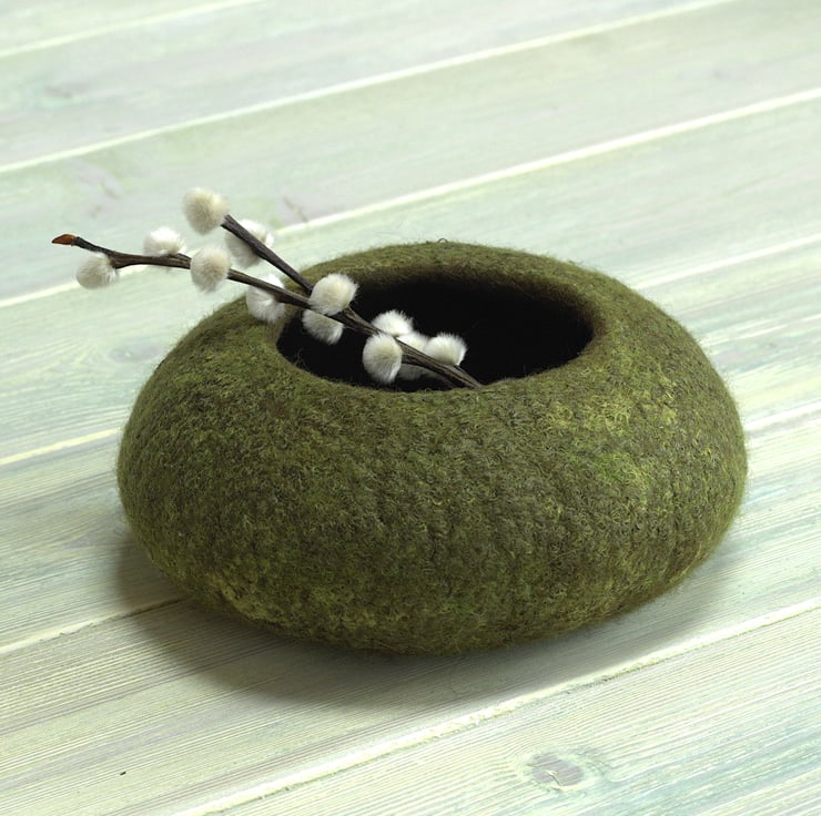 This tactile felt bowl feels lovely to hold - light and soft with a subtle, silky sheen. It makes an ideal vessel in which to keep gathered nature finds such as pine cones, feathers or shells. It will also look good just on its own - a reminder of the natural world outside. As it won’t scratch the surface underneath it can be put to great practical use holding keys and loose change in the hall, or paperclips and rubber bands on your office desk.