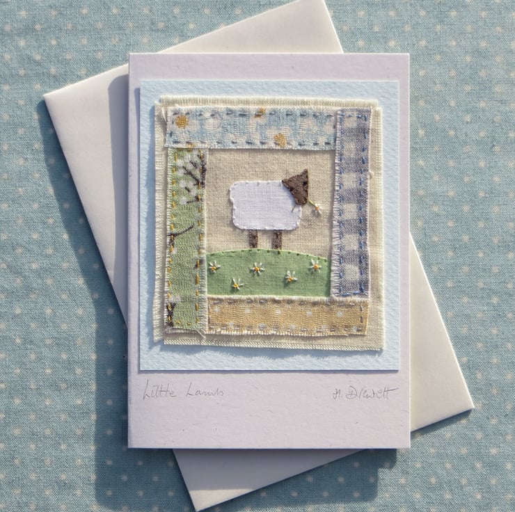 My cards measure 12 x 9 cm (3.5” x 5”) and come with coloured recycled paper envelopes in a clear (compostable cornstarch) sleeve - no plastic! Each card is signed on the front and my studio stamp is on the back. The title is also written on the card, in this case 'Little Lamb'. Cards are made from stout 100% recycled card - blank inside.