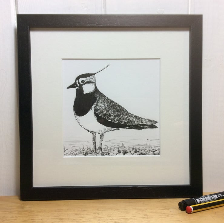 Size of drawing approx. 5x5”. Framed in simple black, 8x8” wood frame with mount.
