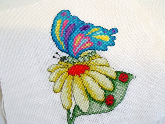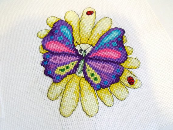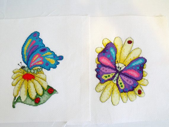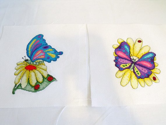 Here we have a two very pretty butterflies on sunflowers cross stitch ready to frame.