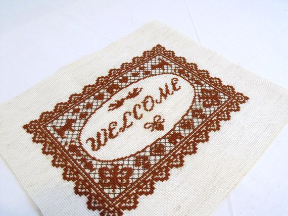 Here we have a lovely welcome cross stitch ready to frame, house warming gift.