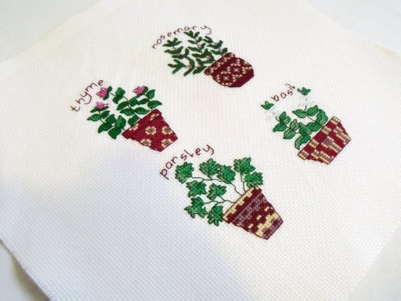 Here we have a lovely herbs cross stitch ready to frame. Kitchen decor.