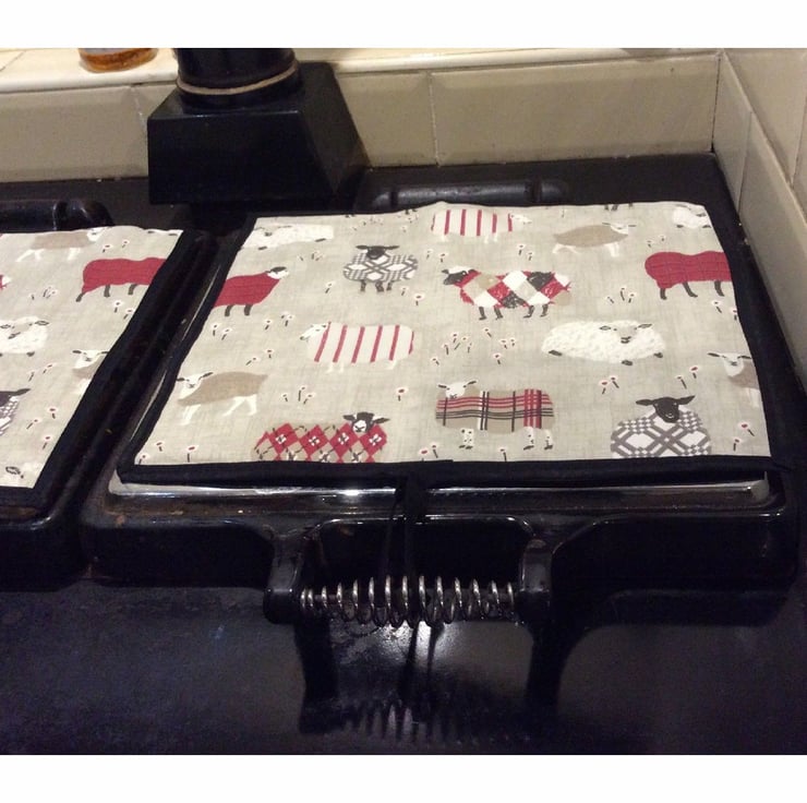 Each mat has three layers - Facing cotton fabric, a layer of padding and a layer of towelling - Making it also suitable for mopping up and pot-grabbing!