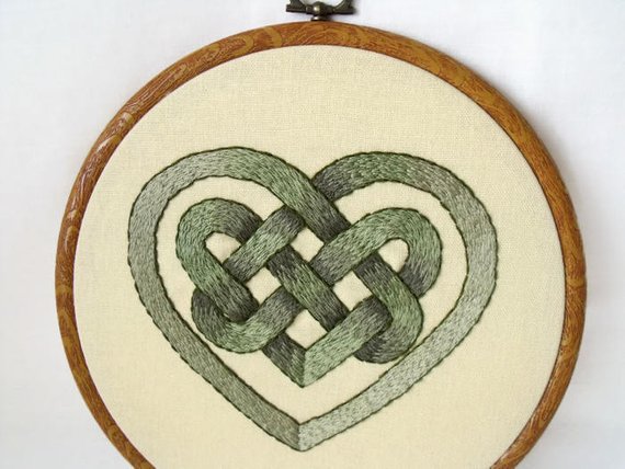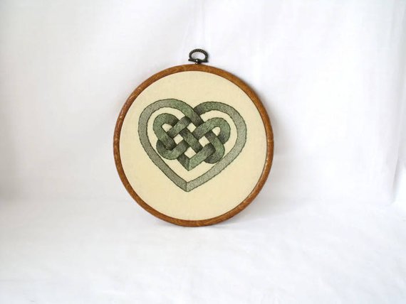 Here we have a celtic heart hand embroidered hoop art.