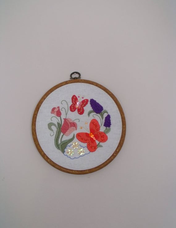 Here we have a hand embroidered butterfly and Buddleia framed picture.