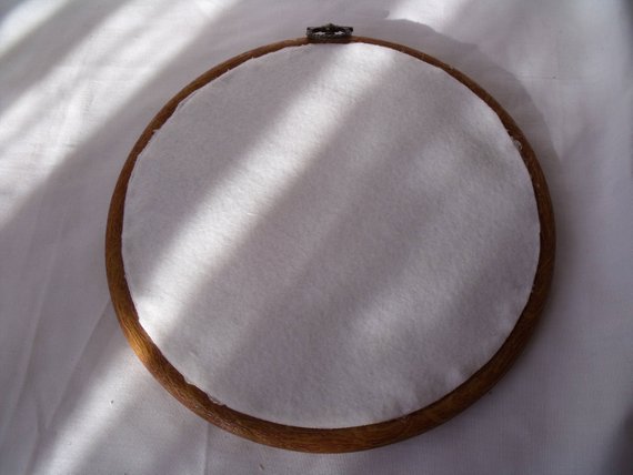On the back I have glued an piece of white felt to hide the reverse stitches.