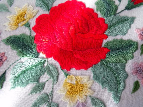 I have used a few different style embroidery stitches for this piece to achieve the desired shading and texture on the flowers and leaves.