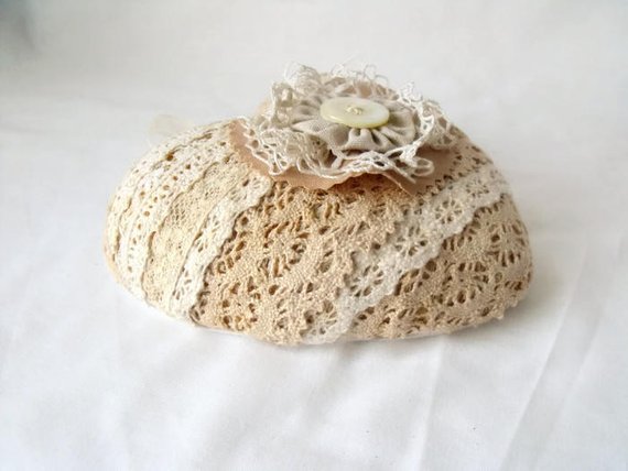 All the lace has been mounted onto a polystyrene heart.