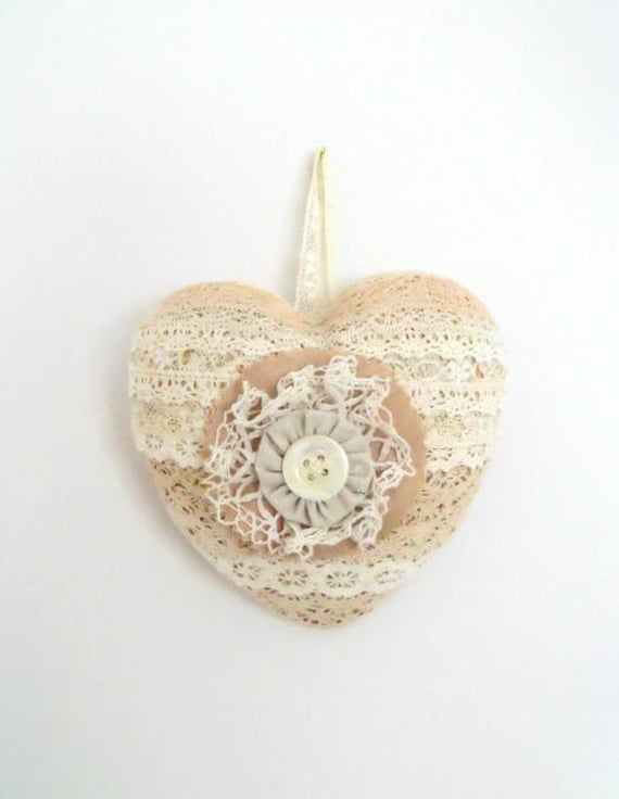 Here we have a vintage style lace heart wall hanging.