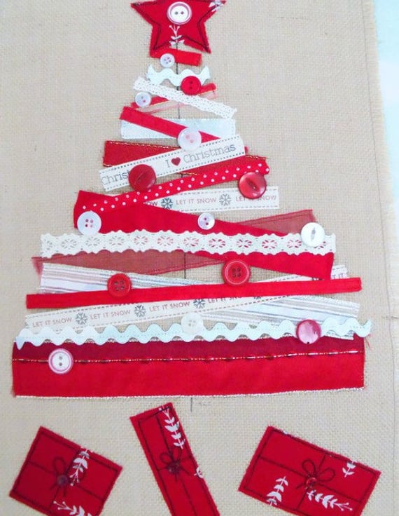 Here we have a one off mixed media Christmas tree collage, festive wall hanging.