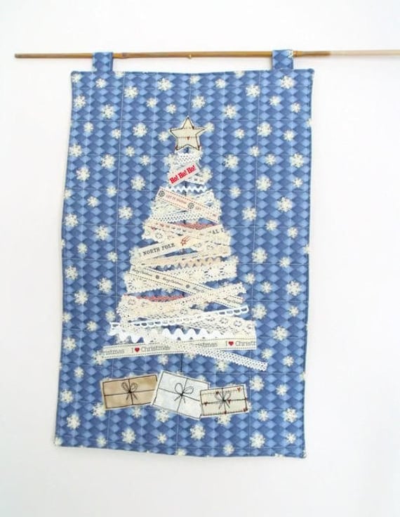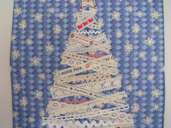 The tree is made using ric rac, vintage look cotton lace and Christmas ribbon in lovely neutral shades.