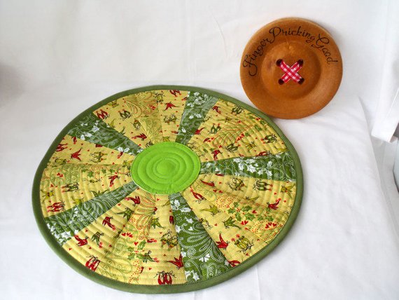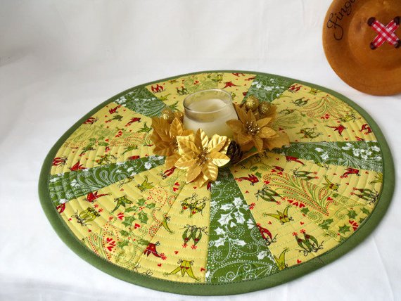 Quilted Christmas candle mat for your table. Large festive candle holder.