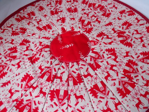 I've sewn this using red and beige scandi cotton fabric depicting deer and chalets.