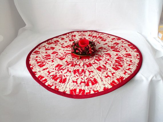Large quilted scandi style christmas candle mat for your table. Large festive candle holder.