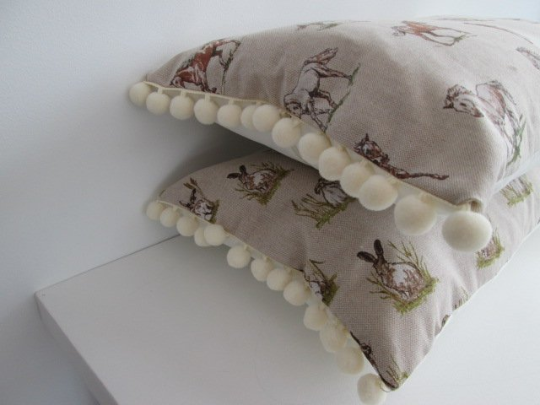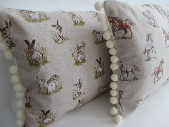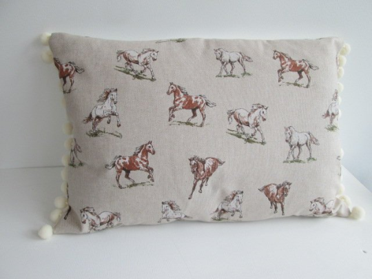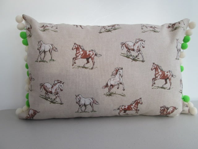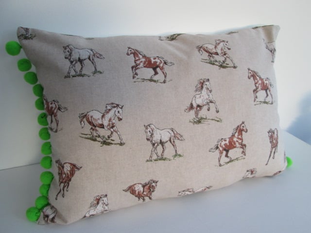 Horse cushion with lovely soft polyester inner zip and cream and green bobbles