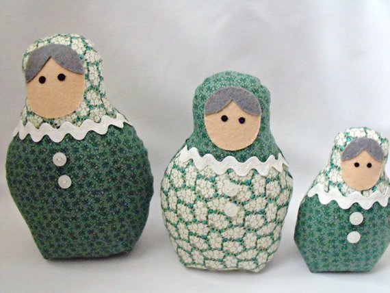 Set of three graduated matryoshka babushka russian nesting art dolls for display