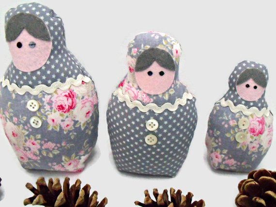 Set of three graduated matryoshka babushka russian nesting art dolls for display
