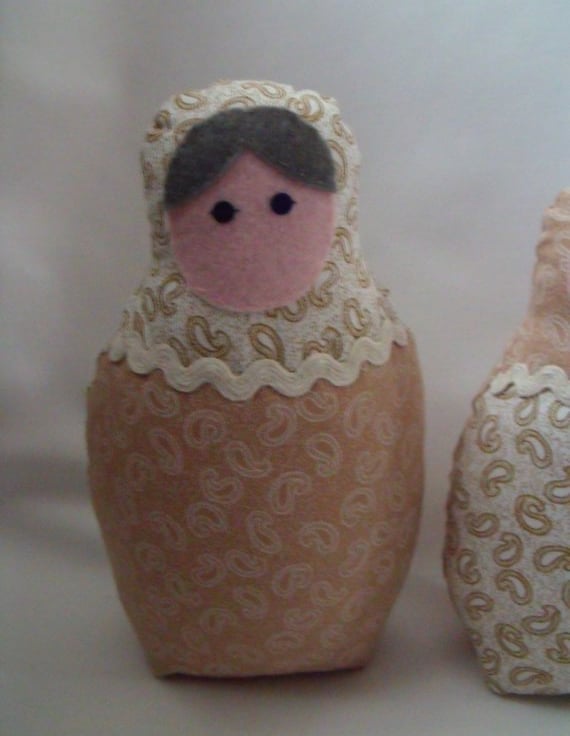100% cotton bodies with felt faces and hair which has been hand sewn to the body.
