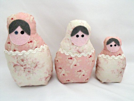 Set of three graduated matryoshka babushka russian nesting art dolls for display