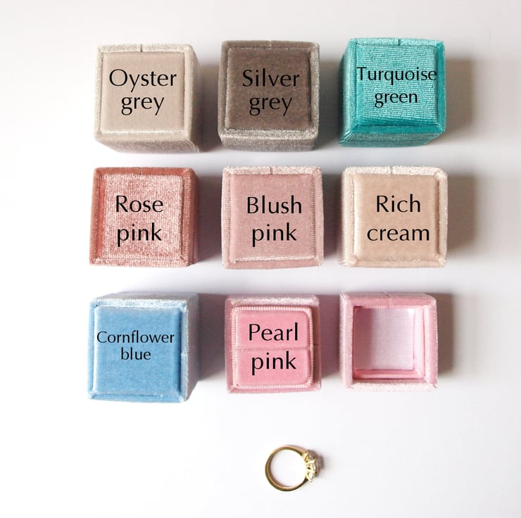 This box is available in a range of colours including cornflower blue, turquoise, oyster grey, silver grey, rich cream, pearl pink, rose pink and blush pink.