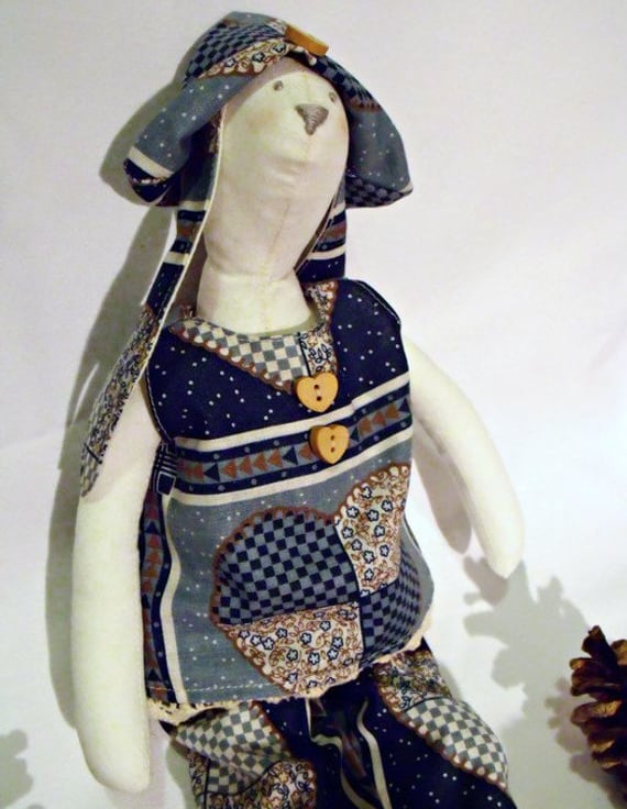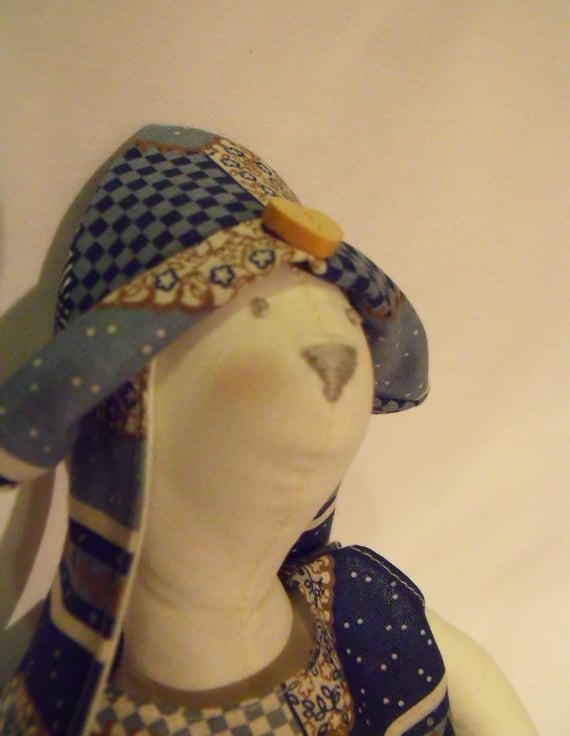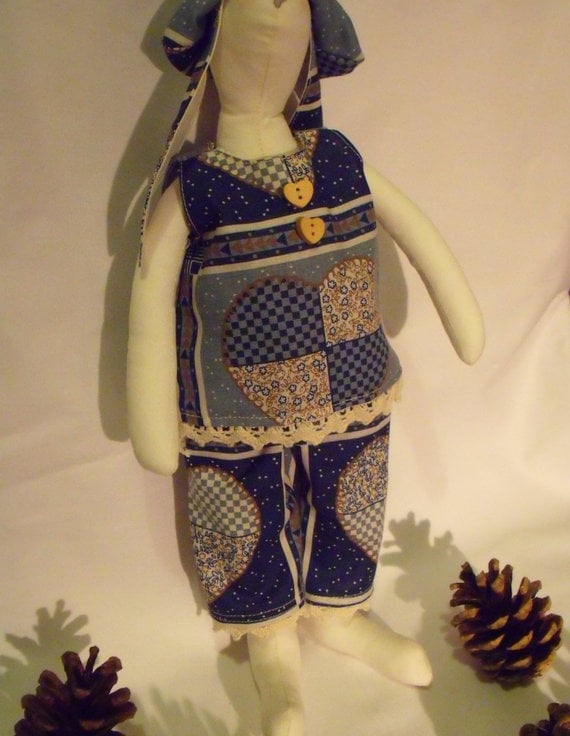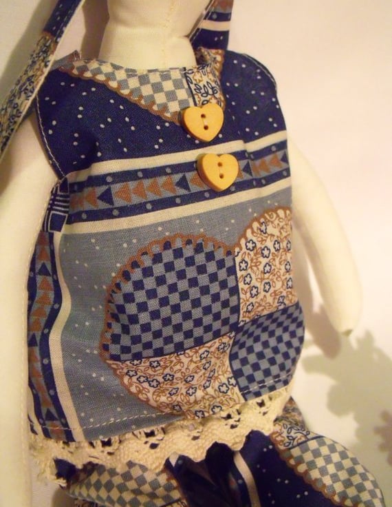 Here we have an adorable Tilda style bunny rabbit doll wearing patchwork outfit.