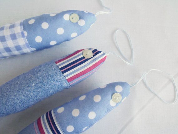 A lovely set of three nautical hanging fish, home décor.