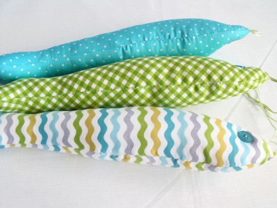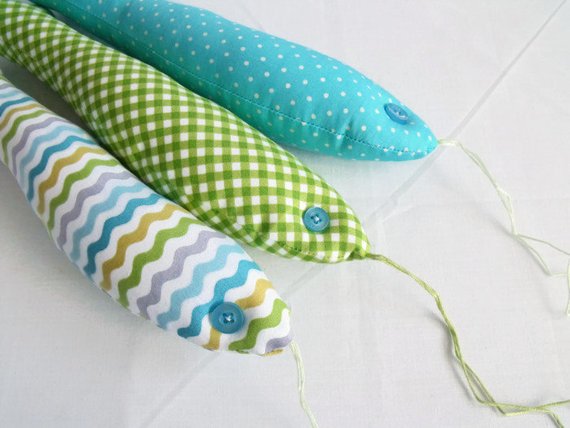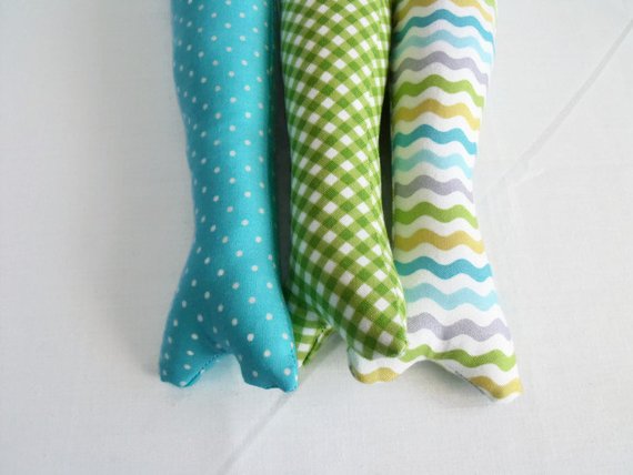 These have been sewn turquoise, lemon, green and grey cotton fabric.