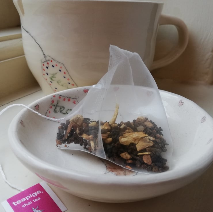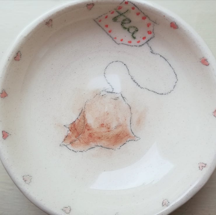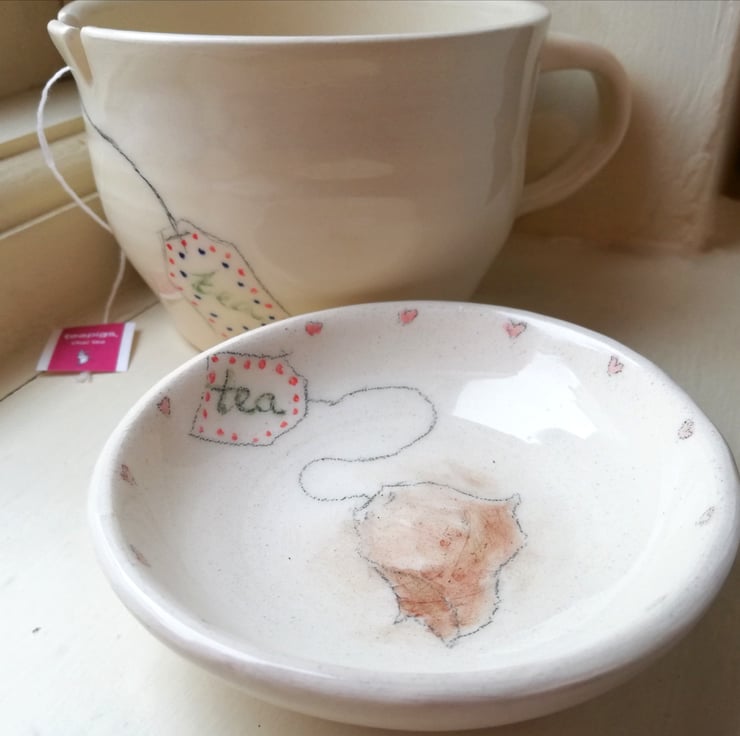 I wanted somewhere to put my used tea bags after making a cup of tea and thought painting on a used teabag would point out its purpose and was a quirky idea .